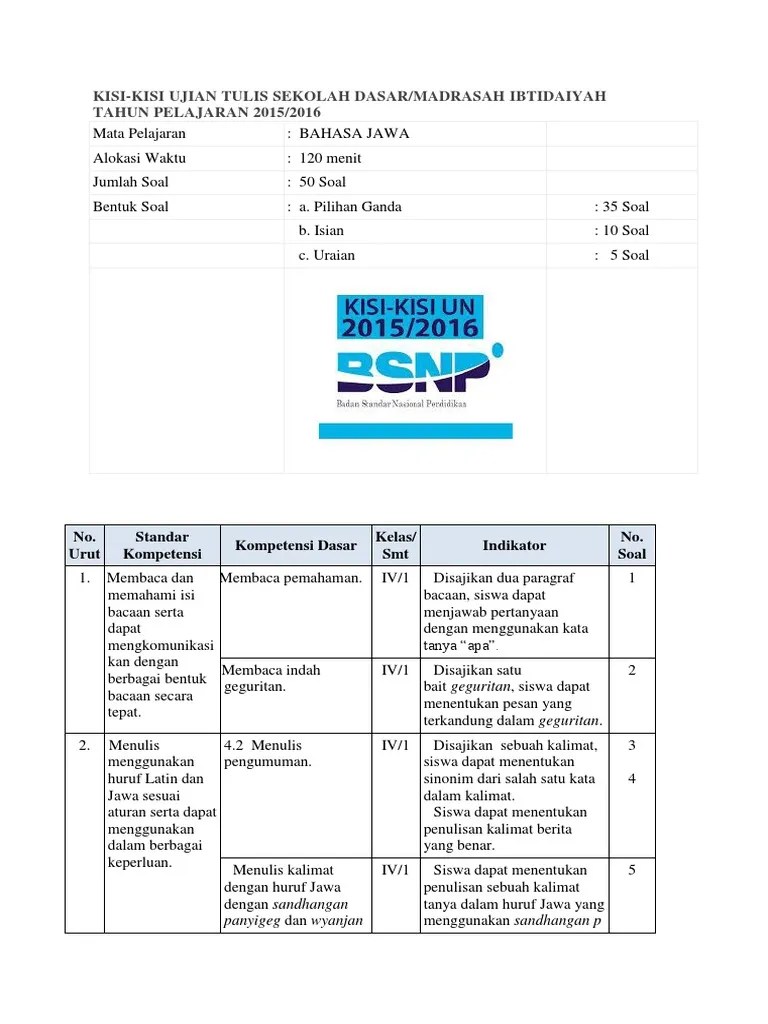Soal ujian sekolah bahasa jawa menggunakan materi irisan dari kurikulum .